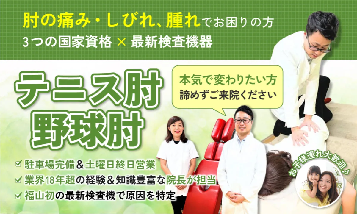 これは、テニス肘や野球肘のような症状にも同じことが言えます。